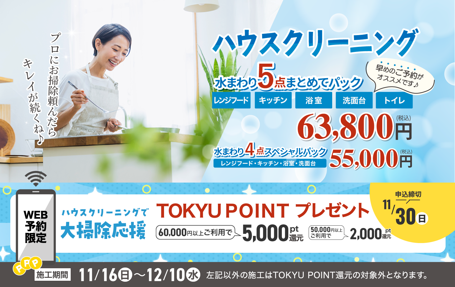 スペシャルパックで水廻りをお願いしました。数ある業者の中から、東急グループという安心感や信頼感で選びましたが、スタッフの丁寧な対応とスムーズな作業は予想以上でした。特にキッチン・レンジフードは驚くほどキレイに。ここに依頼して良かったと実感しました。