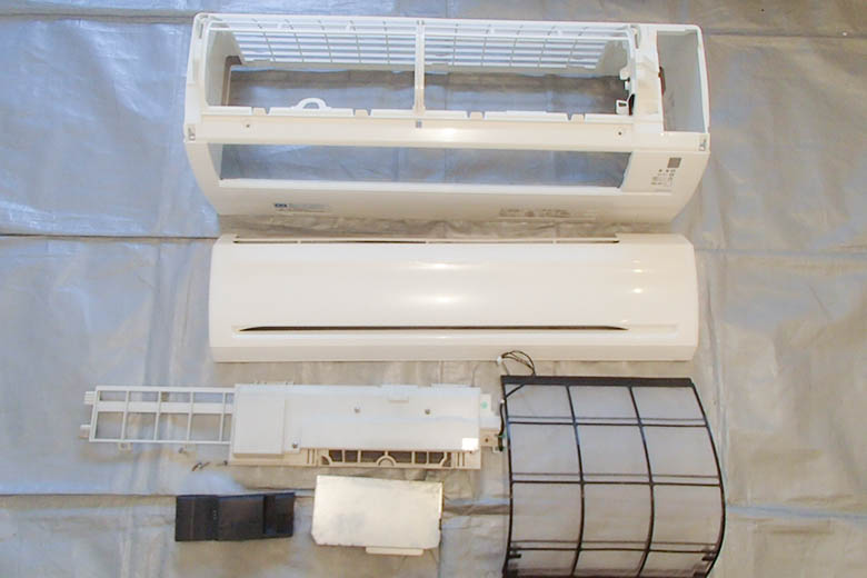 エアコン本体は分解し、細部まで汚れをキレイに落とします。
